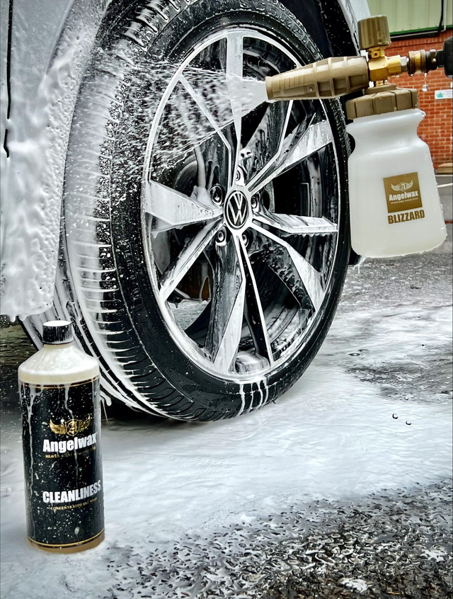 Our chemists have designed this water based cleaner to be used through the foaming lance of a pressure washer and is safe to use on all vehicle surfaces. Angelwax CLEANLINESS is high foaming, solvent-free and completely wax & sealant safe.